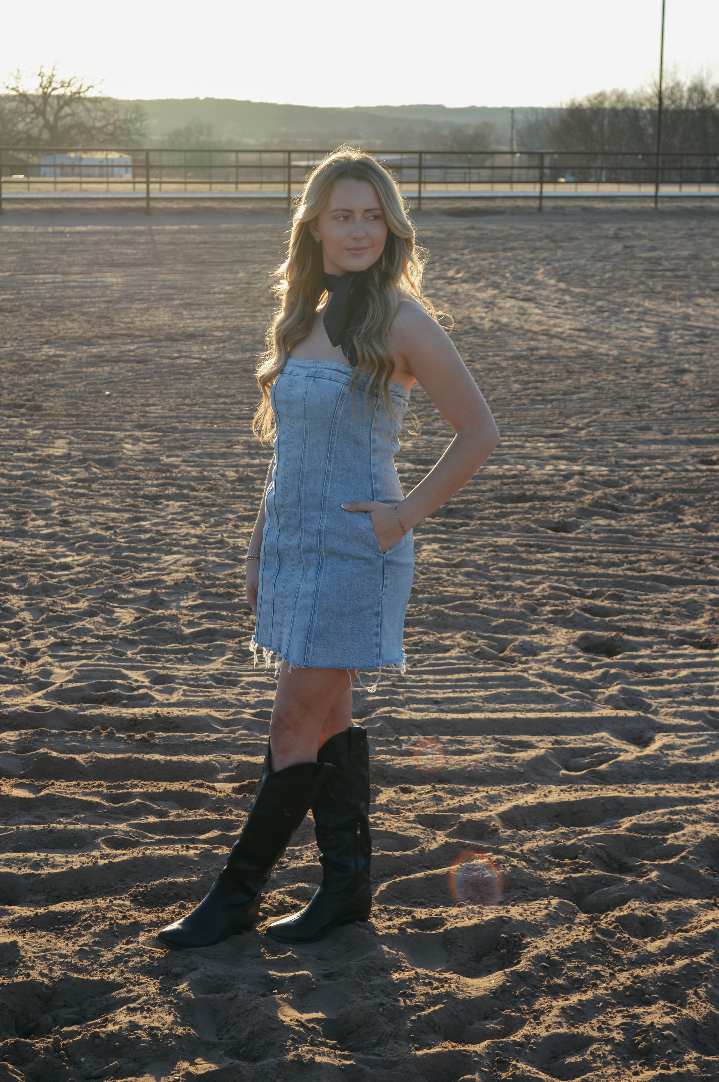 The Tatum Denim Dress features a light wash, exposed seams, and a back zipper closure for easy wear. With its unique raw hem and stretch denim fabric, this dress is both stylish and comfortable.