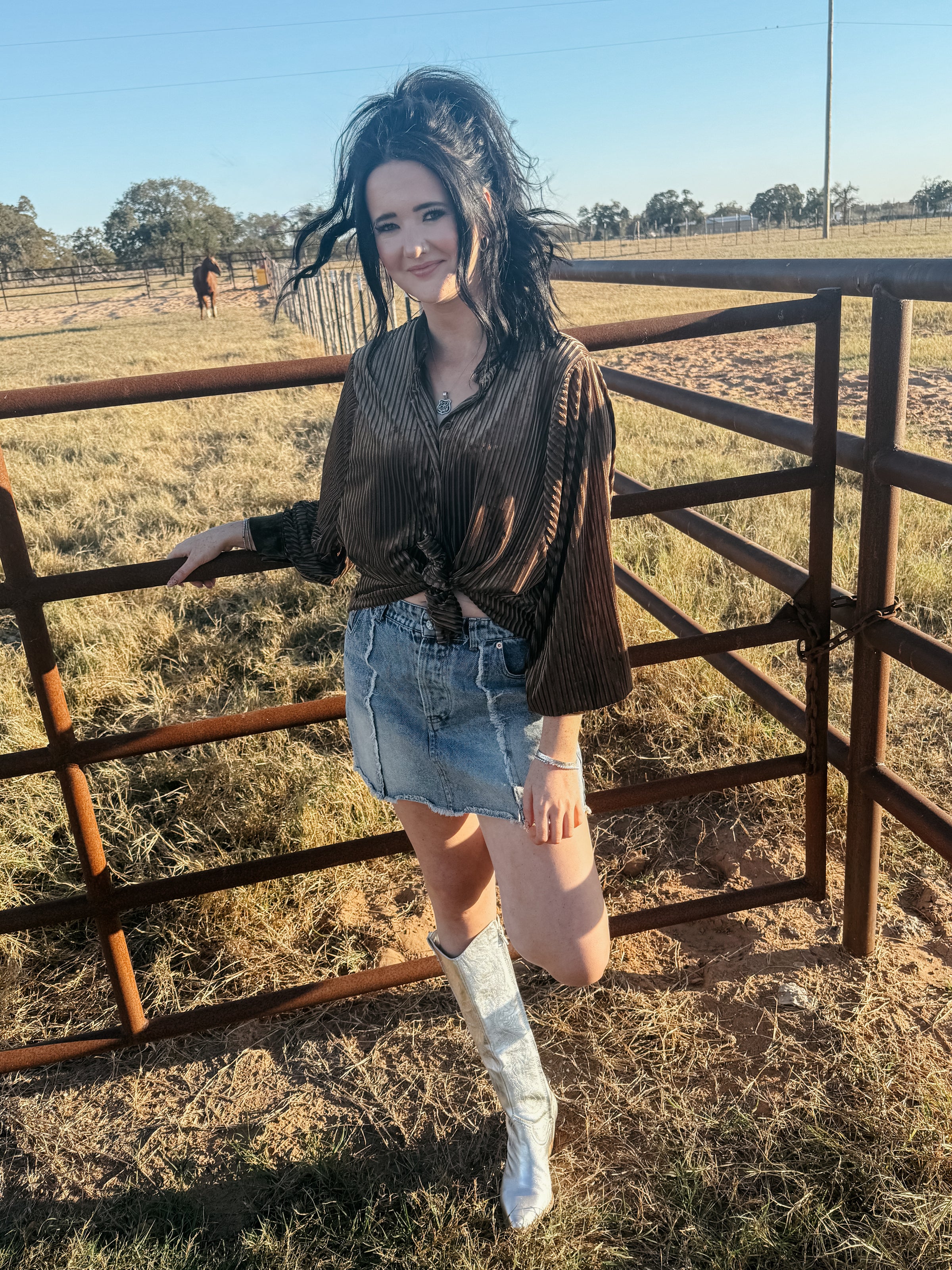 A button down blouse is a staple product in your closet! The velvet texture adds to the beauty of this top! So easily dressed up or down.