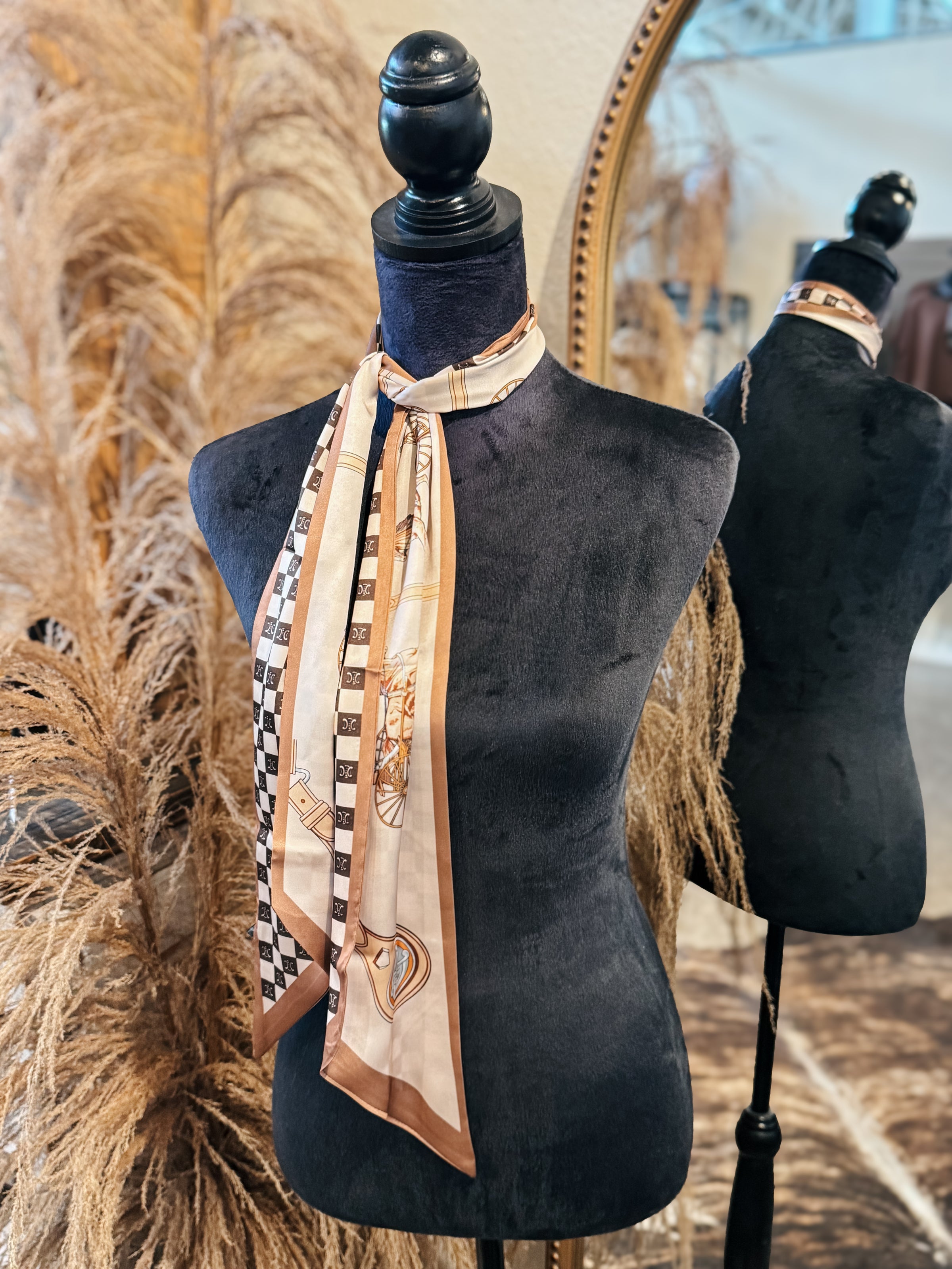 Chic horse and carriage design with brown checkered detail! The perfect chic, western mix!